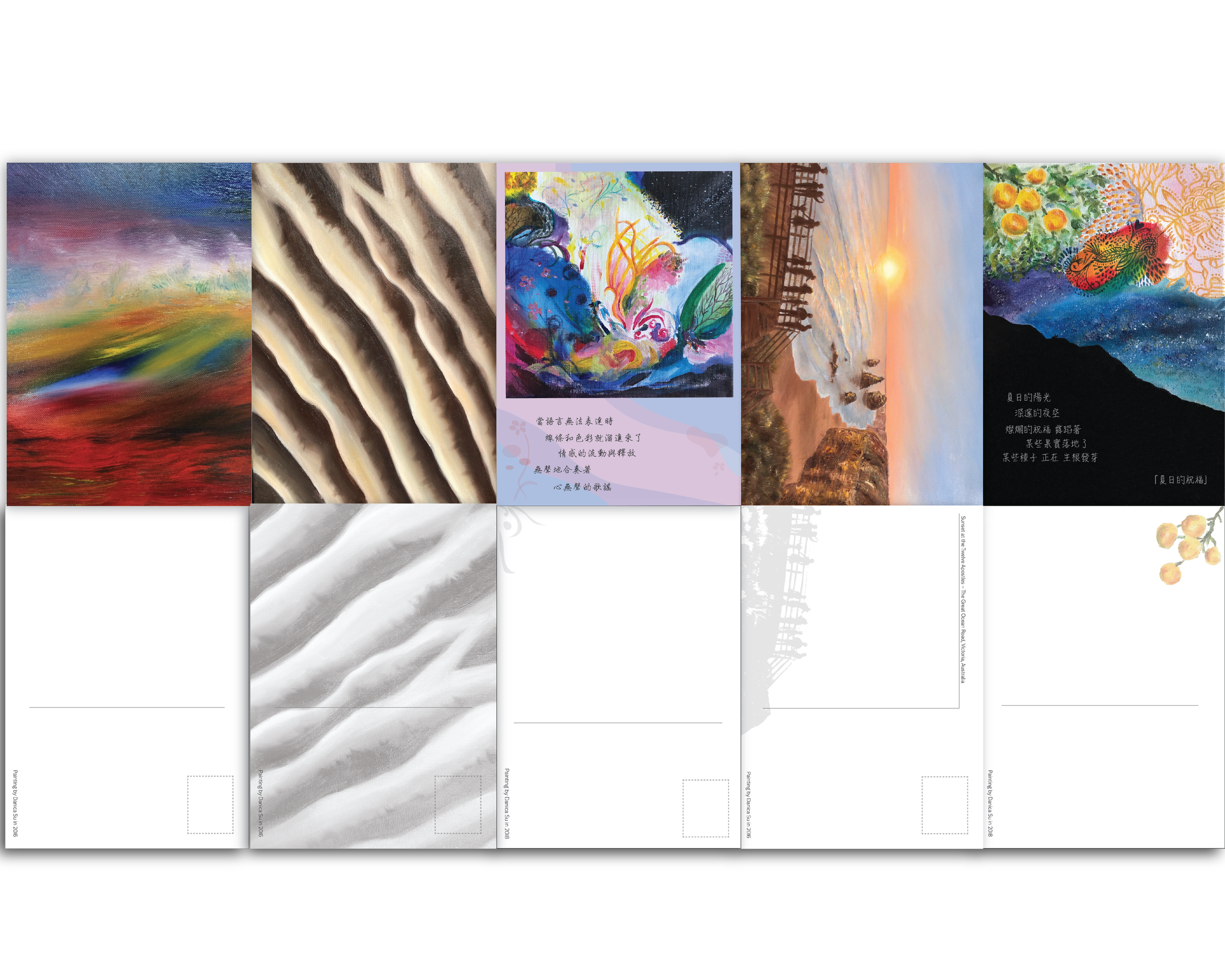 During my time volunteering as a teacher in Taiwan, I made my paintings into post cards as part of the gifts for the teachers. Some of them were paired with a short poetry I wrote in Chinese.